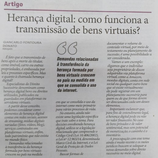 Especialistas do Direito Sucessório denominam como herança digital bens ou direitos utilizados, publicados ou guardados em plataformas ou servidores virtuais.